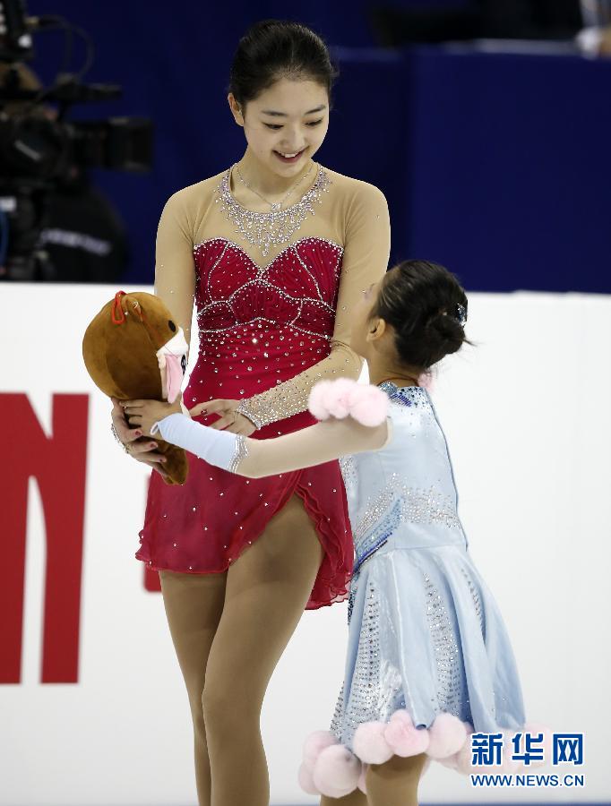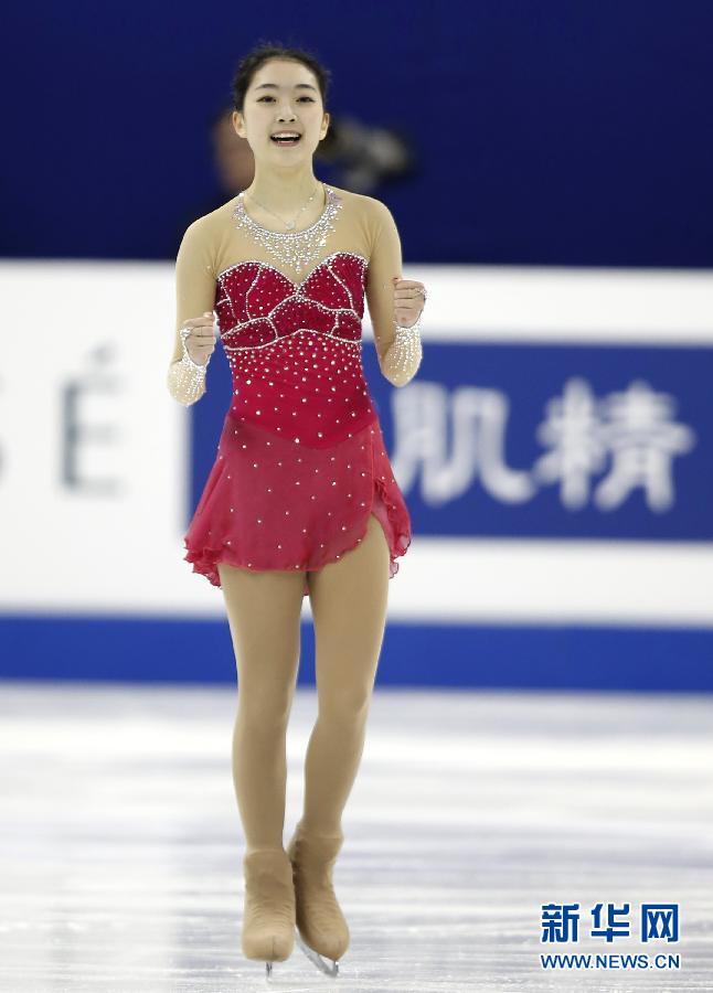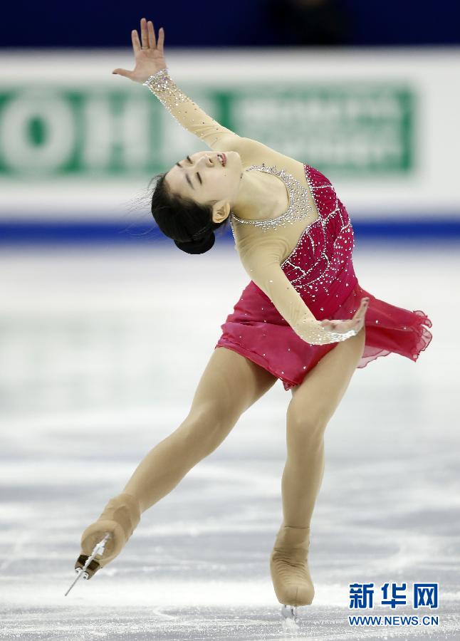 寫(xiě)真は26日、女子シングル?ショートプログラム(SP)演技中の中國(guó)の李子君(リー?ズージュン)選手。上海東方スポーツセンター「海上王冠」體育館で同日行われた2015年世界フィギュアスケート選手権女子シングル?ショートプログラムで、中國(guó)の李子君選手は61.83點(diǎn)で6位に入った。新華網(wǎng)が伝えた。(編集YH)