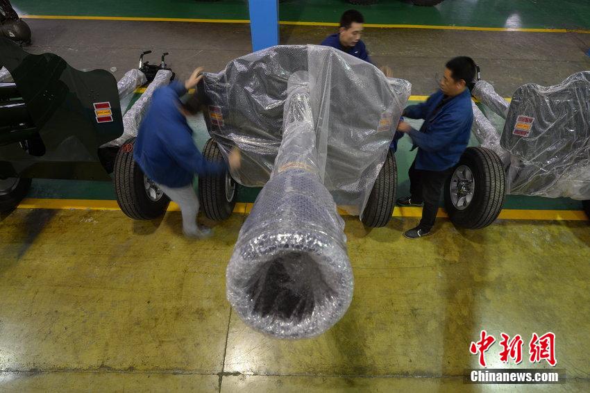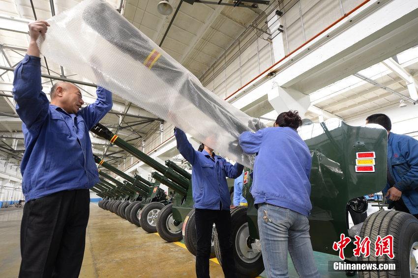 寫真は9日、08式儀禮用禮砲にカバーをかける作業(yè)員。中國(guó)人民抗日戦爭(zhēng)と世界反ファシズム戦爭(zhēng)勝利70周年記念の軍事パレードでは、山西北方機(jī)械制造有限責(zé)任公司が生産した禮砲12門が各國(guó)要人を迎える儀禮用禮砲として使用され、組み立てと試験は完了した。同時(shí)に軍事パレード用の禮砲として引き続き同型の禮砲60門を製造する。中國(guó)新聞網(wǎng)が伝えた。(編集YH)