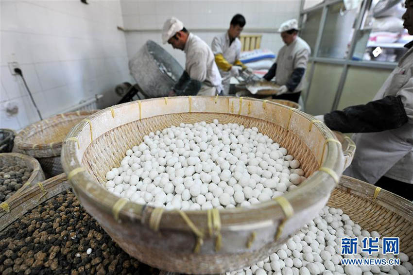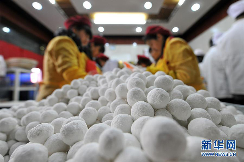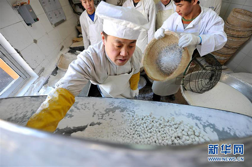 山西省太原市の老舗元宵団子店「老鼠窟」の店員が2月15日、元宵団子を加工している。元宵節(jié)(舊暦の1月15日、今年は2月22日)を目前に控え、同市にある多くの老舗元宵団子店は大盛況だ。店員らは伝統(tǒng)工蕓を用いて様々な風(fēng)味の元宵団子をフル稼働で製作しており、元宵節(jié)における市場(chǎng)の需要を満たそうとしている。新華網(wǎng)が伝えた。(編集JK)