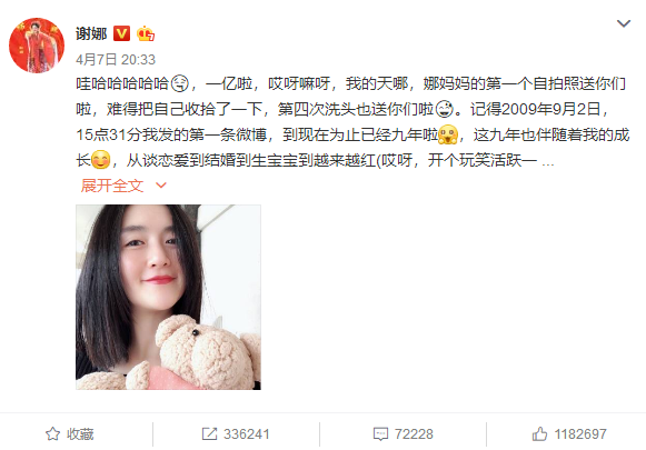 中國の人気司會者?謝娜の微博フォロワー數(shù)がなんと1億人を突破!