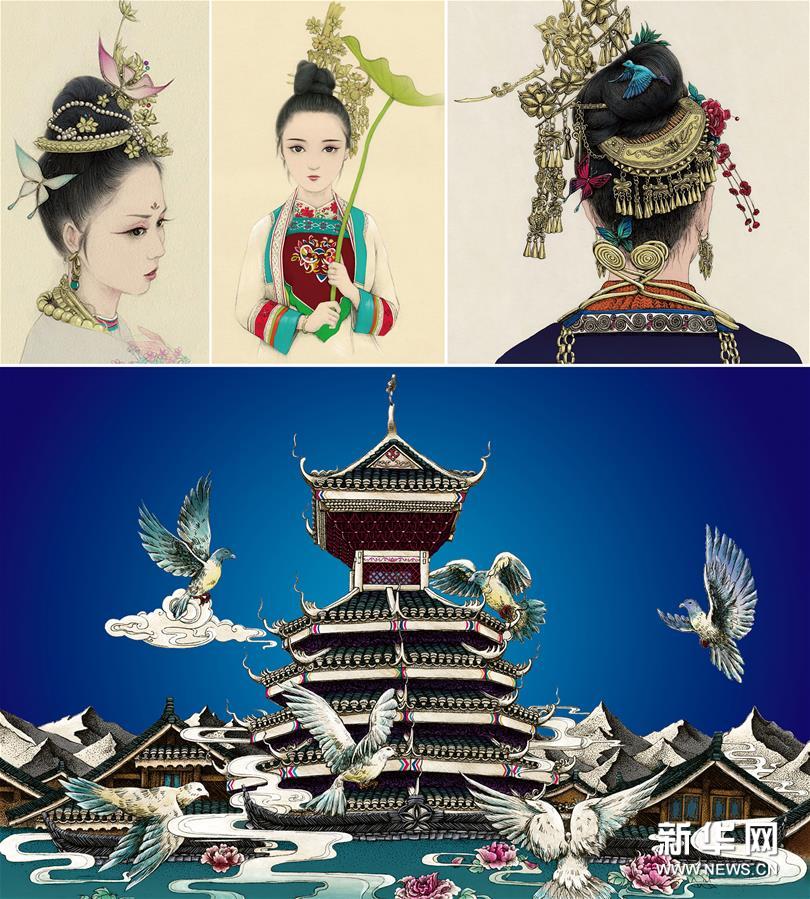 民族文化の美しさの伝承目指すトン族のイラストレーター