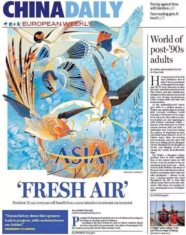 まるでアートのような中國(guó)日?qǐng)?bào)國(guó)際版の一面を飾るイラストが話題に