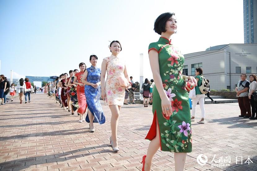 在日華人、國慶節(jié)中にお臺場でチャイナドレスショー