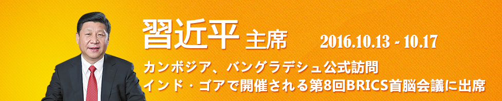 - 外交部(外務(wù)省)ウェブサイトによると、習近平國家主席はカンボジアのシハモニ國王、バングラデシュのハミド大統(tǒng)領(lǐng)、インドのモディ首相の招待を受け、10月13日から17日にかけてカンボジア、バングラデシュ両國を公式訪問するとともに、インド?ゴアで開催される第8回BRICS首脳會議に出席する。