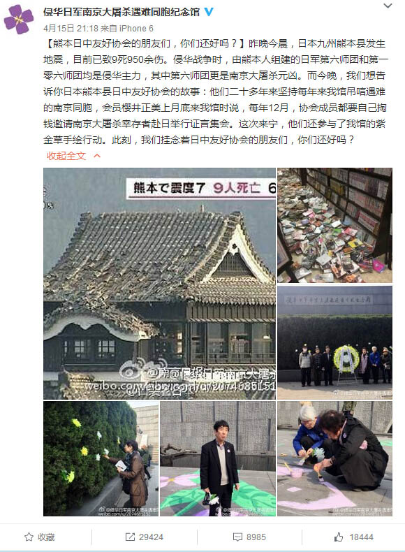 日本の九州地方では、14日夜マグニチュード6.5の地震が発生した。また、16日未明、九州地方でマグニチュード7.3の地震が発生した?,F(xiàn)時點では47人が死亡、1135人が負(fù)傷した。