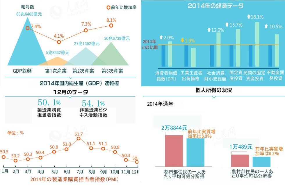 2014年の中國(guó)経済の主要データ 新常態(tài)の中で安定的に推移
