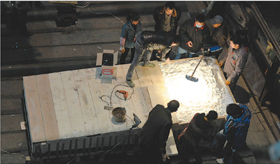 注目を集めていた江西省南昌市にある前漢??;韬钅工沃鞴祝ü状菠蚝啵─蜗湓懁幛?、1月5日に完了した。箱の底は鋼板で出來ており、東北地區(qū)から運(yùn)ばれた松の木が使われている。體積は約4立方メートル、重さは約4トン。専門家チームは先月30日、発掘現(xiàn)場での議論の末、內(nèi)棺の文化財(cái)が複雑に堆積しており、多くの玉器が副葬されていることから、文化財(cái)の安全を保証するため、主棺全體を取り出し実験室內(nèi)で整理作業(yè)を行うこと[詳細(xì)]