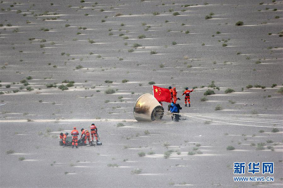 長(zhǎng)征7號(hào)ロケットによって打ち上げられた縮小版多目的宇宙船の帰還モジュールが26日午後3時(shí)41分、東風(fēng)著陸場(chǎng)の南西に位置するゴビ砂漠で無(wú)事著陸した[詳細(xì)]