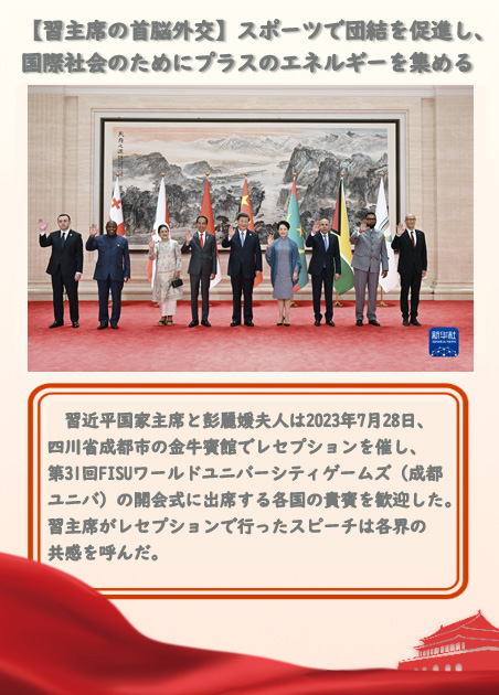 習近平國家主席と彭麗媛夫人が成都ユニバ開會式に出席する各國貴賓の歓迎レセプションを開催