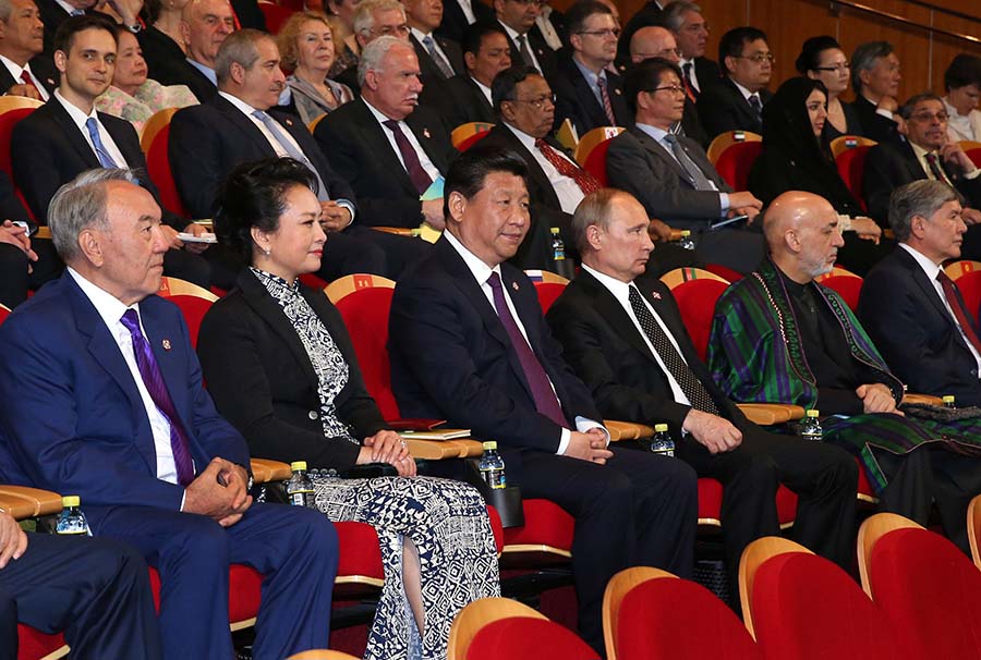 歓迎パーティーの後、文化蕓術(shù)公演「団結(jié)と調(diào)和のアジア――手を攜えて明日へ向かう」が上海大劇場(chǎng)で行われた。(編集NA)