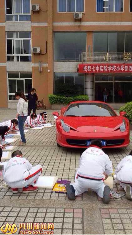 小學(xué)生の寫生のためにランボルギーニやフェラーリを道具として學(xué)校に持って來るとは、贅沢すぎはしないだろうか。これは成都市第7中學(xué)実験學(xué)校小學(xué)部のキャンパスに登場した風(fēng)景だ。四川新聞網(wǎng)が伝えた。