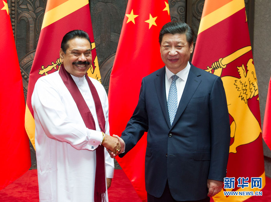 ラジャパクサ大統(tǒng)領(lǐng)との會(huì)談では「スリランカは21世紀(jì)の海のシルクロードの建設(shè)、アジアインフラ投資銀行設(shè)立の重要な協(xié)力パートナーだ。雙方は海洋経済、港灣建設(shè)、海上安全協(xié)力を重點(diǎn)的に推進(jìn)し、早期に成果が上がるようにする必要がある。自由貿(mào)易協(xié)定(FTA)交渉を早期に始める必要がある。中國(guó)政府は中國(guó)企業(yè)のスリランカでの投資、事業(yè)展開を奨勵(lì)する」と表明した。
