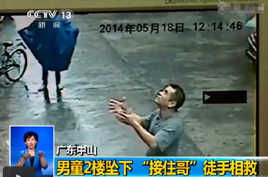 今月18日晝、広東省中山市小欖鎮(zhèn)にある住宅の2階の窓から、幼児が身を乗り出し、母親を探して大聲で叫んでいた。この部屋の向かいにいた男性、李顕文さんは、今にも窓から落ちそうな幼児を見つけるとすぐに窓の下に駆けつけ、幼児を受け止めるべく両手を上に挙げて姿勢と位置を整えた。李さんに続き、女性2人がソファーや段ボールを抱えて走ってきて、窓の下の地面に置いた。さらに上半身裸の男性が駆けつけ、両手を広げてスタンバイした。12時14分、幼児は2階の窓から転落。李さんが子供をしっかりと抱きとめた。幸い、雙方共に怪我は無く、李さんは一躍有名人になった。広州日報が伝えた。