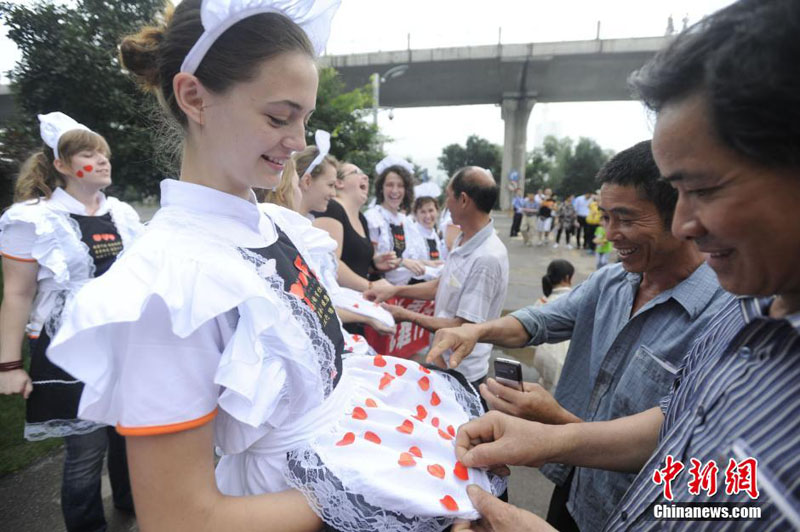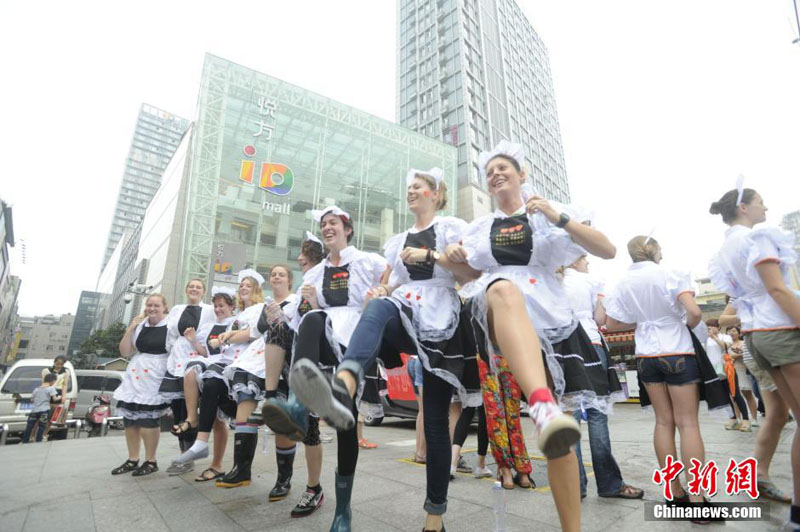 メイドの服裝に身を包んだ外國人美女たちが25日、長沙の街角や地下鉄駅でフラッシュモブを行い、通行人に対して煙霧への対処法を記したビラやマスクを配布した。彼女たちが煙霧対策のために行なったフラッシュモブは多くの市民の注目を集め、賛同を集めた。 中國新聞網(wǎng)が伝えた。(編集YH)