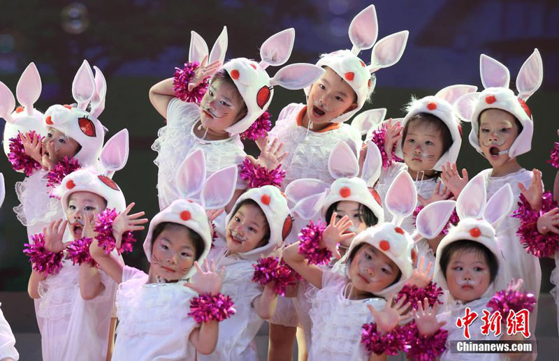寫真は25日、生き生きと踴る南京春江幼稚園の子どもたち。江蘇省南京市では同日、第6回「春江花月夜」蕓術(shù)祭?春江幼稚園10周年記念活動(dòng)が行われ、十二支をテーマにした「馬蹄聲聲」(馬の蹄の音)、「竜騰虎躍」(躍動(dòng)する竜とトラ)、「親親豬豬寶貝」(可愛いブタの子ども)といったスタイルの獨(dú)特のパフォーマンスが披露された。中國新聞網(wǎng)が伝えた。(編集YH)