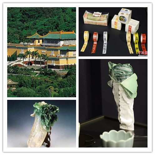代表的な所蔵品:翠玉白菜、清代、玉彫、長さ18.7センチ、幅9.1センチ、厚さ5.07センチ。