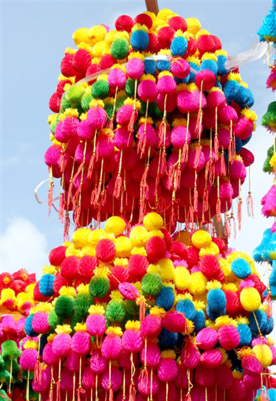 大小様々な色とりどりの紙のひょうたんを糸でつるし、下に房などを付け、柳の枝に飾り、軒端で風に揺れるのを楽しむのは端午節(jié)の美しい風景だ。