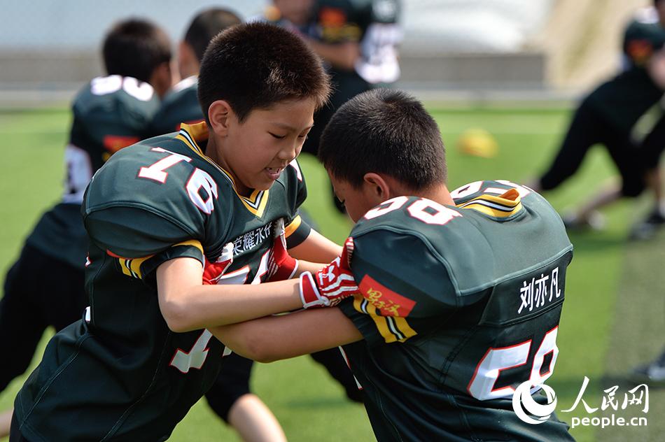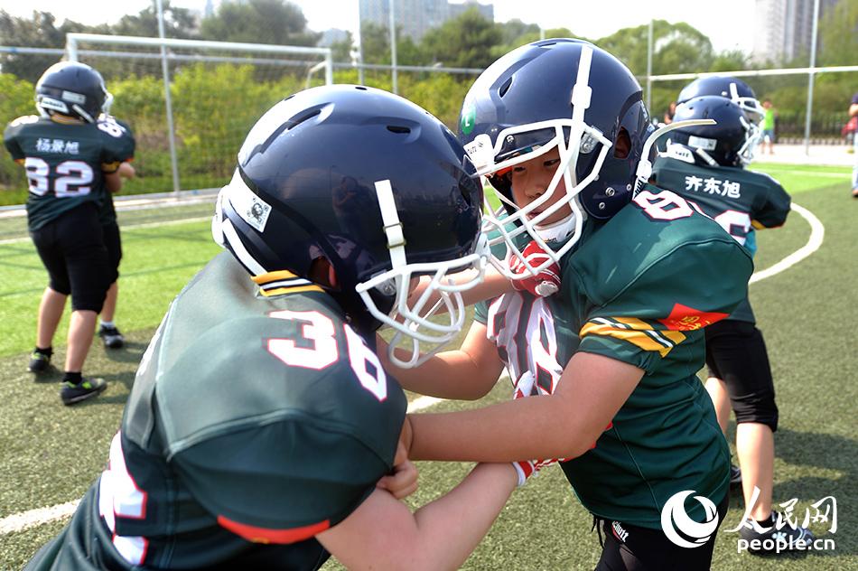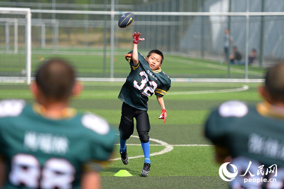 北京オリンピック森林公園では週末になると、専門の裝具を全身に著けてアメリカンフットボールの練習に打ち込む男の子たちの姿が見られる。パス、レシーブ、タックルなど、それぞれの動作がさまになっている。人民網(wǎng)が伝えた。