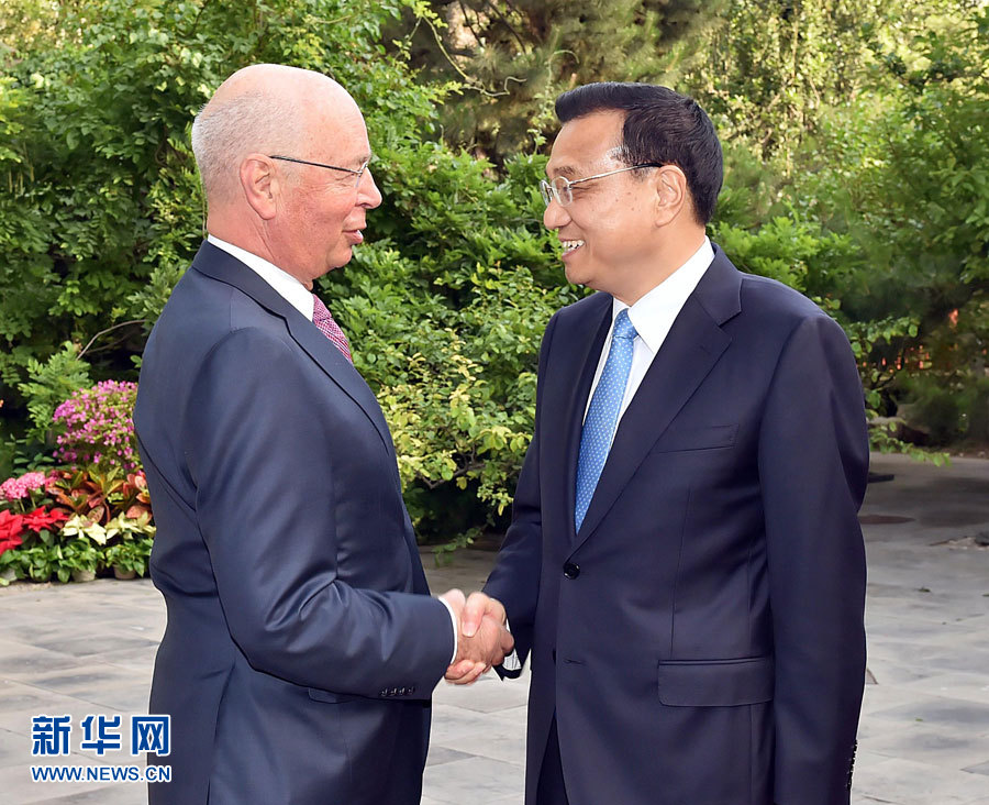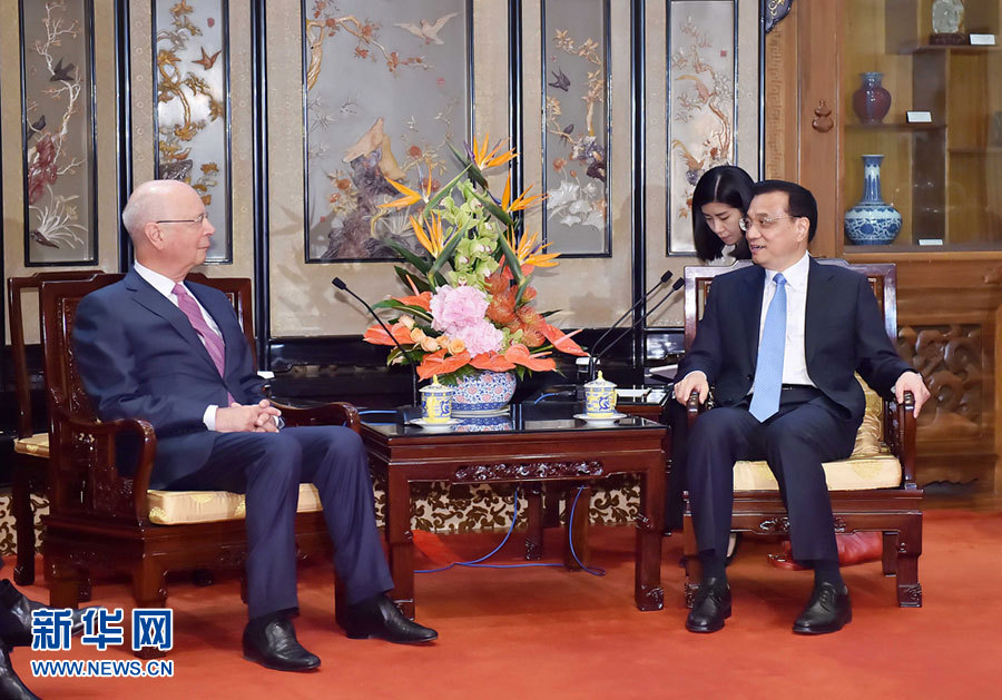 李克強(qiáng)総理は28日午後、世界経済フォーラム(WEF)のシュワブ會(huì)長(zhǎng)と釣魚臺(tái)迎賓館で會(huì)談した。