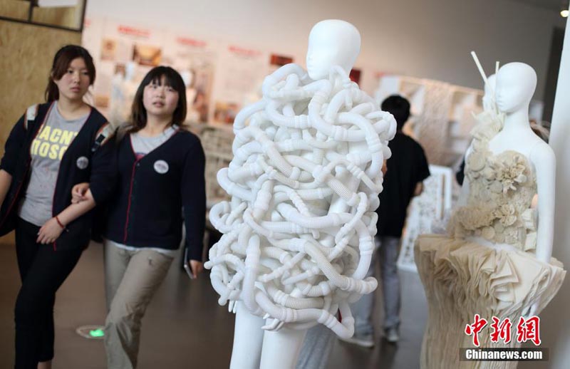 卒業(yè)シーズンに入り、大學(xué)では卒業(yè)生の學(xué)習(xí)の成果が展示されるシーズンが再び巡ってきた?!改暇┦|術(shù)學(xué)院デザイン學(xué)院2014年度卒業(yè)生作品展」が27日、南京蕓術(shù)學(xué)院美術(shù)館で行われ、卒業(yè)生480人の様々なスタイルの作品1200點(diǎn)(組)以上が展示された。作品は蕓術(shù)に対する卒業(yè)生の革新と多元的な追求を體現(xiàn)しており、名実共に文化創(chuàng)意の盛典と言える。寫(xiě)真はモデル専攻の卒業(yè)生の作品展示。中國(guó)新聞網(wǎng)が伝えた。(編集YH)