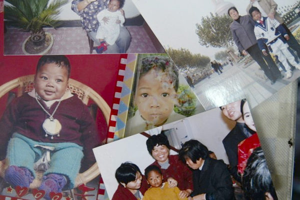 上海市民の朱さんは2000年8月8日、買い物帰りに道端の草むらで乳児を見つけた。乳児は発見された時、裸で弱っており、皮膚はできものだらけだった。かわいそうに思った朱さんは子どもを家に連れて帰り、風(fēng)呂に入れてあげた。しかしどんなに洗っても肌の黒さは落ちず、病院で調(diào)べてもらうと外國人の黒人の子どもだとわかった。寫真は朱さんが保存している「黒いちびちゃん」の成長を記録した寫真。