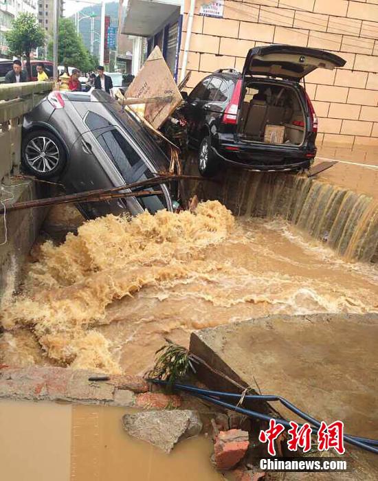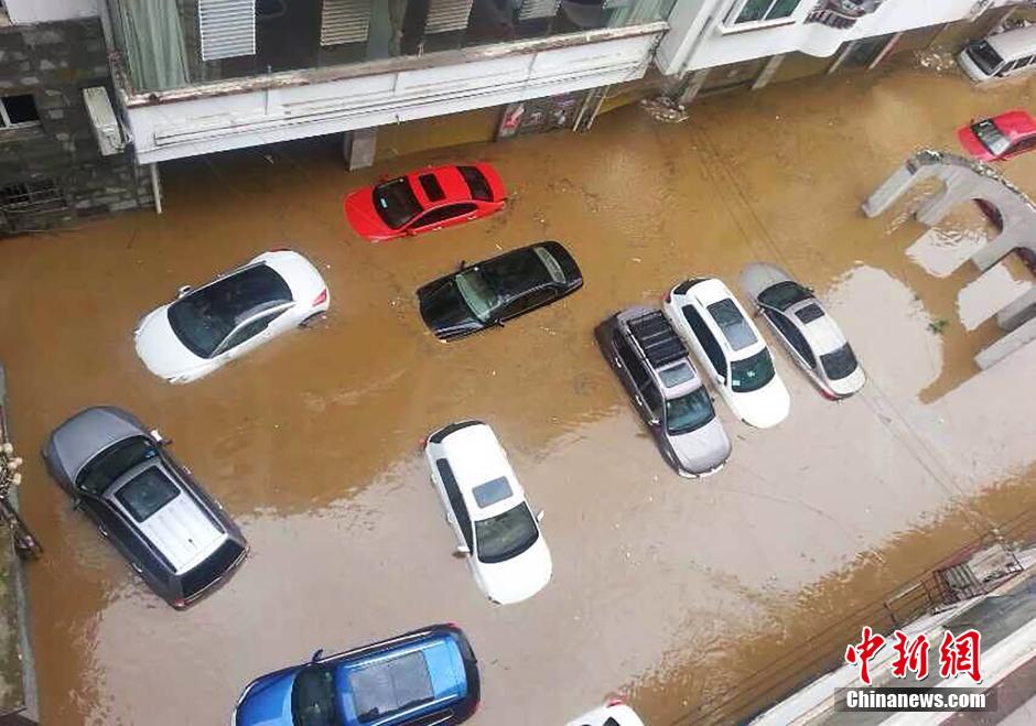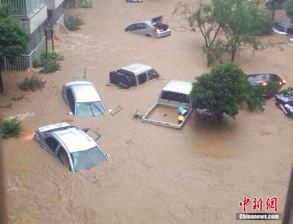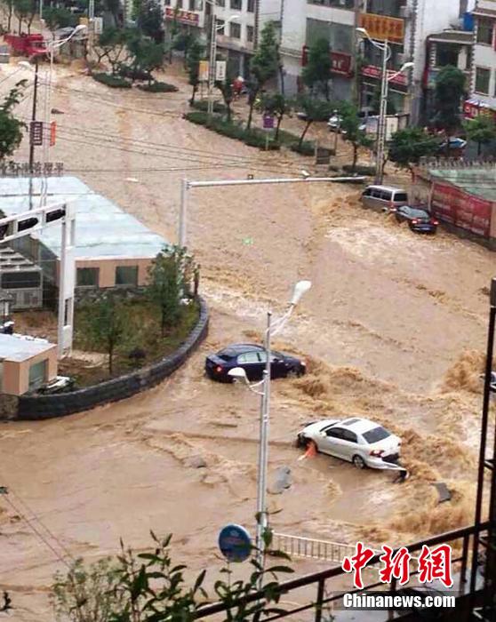 貴州省安順市平壩県では3日、降り続く豪雨により県政府所在都市のあちこちで冠水が発生し、交通がマヒ狀態(tài)に陥った。中國新聞社が伝えた。(編集YH)