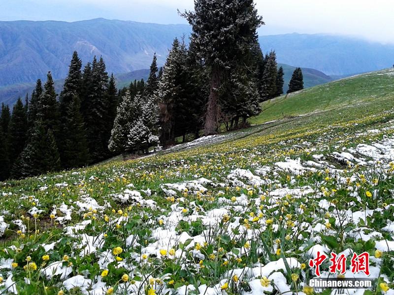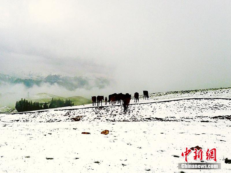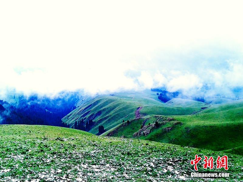 新疆維吾爾(ウイグル)自治區(qū)イリ?カザフ自治州新源県南から出発して車で南山に入ると、一面の緑の草原や松の木々が見える。海抜3千メートルの場所まで登ると、白い雪が山を覆い、霧が峰の間を漂っている。山上の草原では牛や羊がのんびりと草を食み、仙人郷のような美しい風(fēng)景が広がっている。3日早朝に南山では小雨が降り、高地では雪となった。草原では3センチ程度の積雪となった。中國新聞網(wǎng)が伝えた。(編集YH)