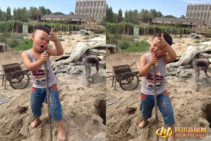 この子どもは今年5歳半になる棋棋ちゃんで、ネットで人気の寫真は昨年7月に新疆維吾爾(ウイグル)自治區(qū)のある工事現(xiàn)場(chǎng)で撮影されたものだという。その日子どもは両親の目を盜んで、こっそりと遊びに行き、その後母親が近くの工事現(xiàn)場(chǎng)で子どもを見つけたという?!赶⒆婴熃瞍虺证盲聘瑜盲皮い毪韦蛞姢啤懻妞虼橛挨筏俊?。 (編集YH)