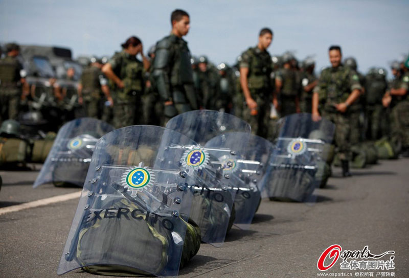 サッカーワールドカップ(W杯)ブラジル大會(huì)の開幕を目前に控えた9日、ブラジルでは開幕に備えて警備が強(qiáng)化されている。人民網(wǎng)が伝えた。(本記事の寫真は全てOsports全體育図片社の著作権作品。転載を禁止する)(編集YH)