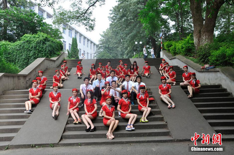 卒業(yè)シーズンが再び巡ってきた。江西理工大學ではこのほど、卒業(yè)生たちがキャンパスで個性的な卒業(yè)記念寫真を撮影し、大學時代の思い出を作っていた。男子學生はネクタイを締めて空に向かって敬禮し、女子學生はスカーフを著用して、客室乗務員のポーズをとっている。中國新聞網(wǎng)が伝えた。(編集YH)