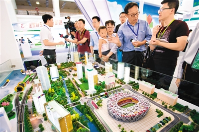 北京市政府、國家発展改革委員會(huì)が共催する第8回中國北京國際省エネ環(huán)境保護(hù)展覧會(huì)が、6月8日に開幕した。同展覧會(huì)は「省エネ?低炭素、クリーンな空気」をテーマとする。展示面積は2萬1000平方メートルに達(dá)し、346社がクリーンエネルギー、低炭素技術(shù)、排出削減などに関する技術(shù)と商品を展示する。寫真は道路の砂塵防止対策を表した模型に目を向ける來場者。(編集YF)