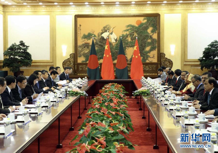 ハシナ首相は會談で、「中國の発展はアジアと世界の利益になる。バングラデシュと中國との全面的パートナーシップのさらなる深化は、バングラデシュの外交政策の基石となっている。バングラデシュは、中國側とのハイレベル相互訪問を強化し、來年の両國の國交樹立40周年を共に祝うことを望む。経済?貿易?インフラ建設?農業(yè)?科學技術?海洋?通信?人文などの分野での互恵協力を深め、バングラデシュ?中國?インド?ミャンマーの経済回廊建設についての連攜を高めていきたい。バングラデシュは、中國企業(yè)からの投資の拡大やインフラ建設參加を歓迎する。南アジア地域協力連合と中國との関係発展に今後も積極的な役割を果たしていく」と述べた。(編集MA)