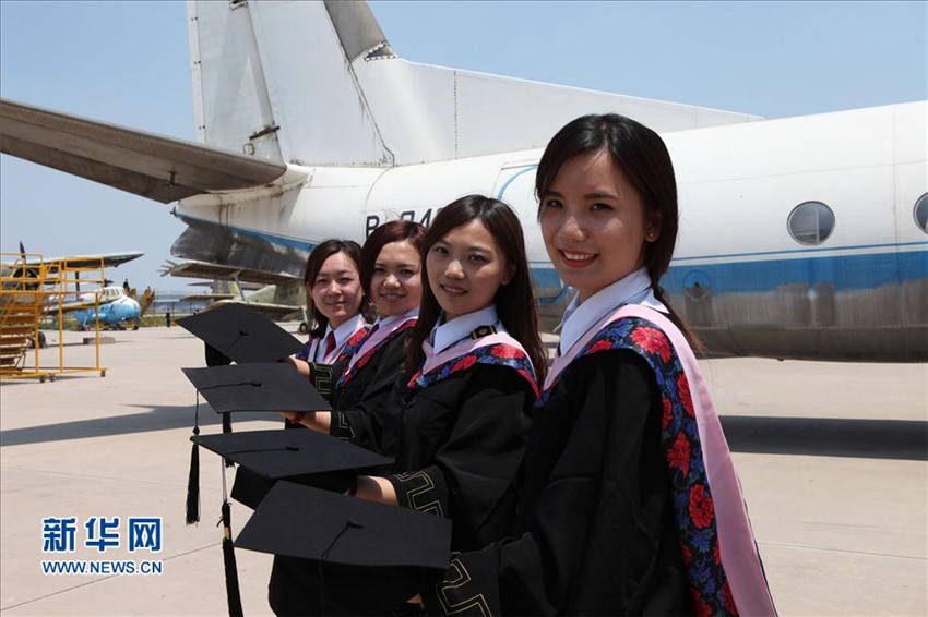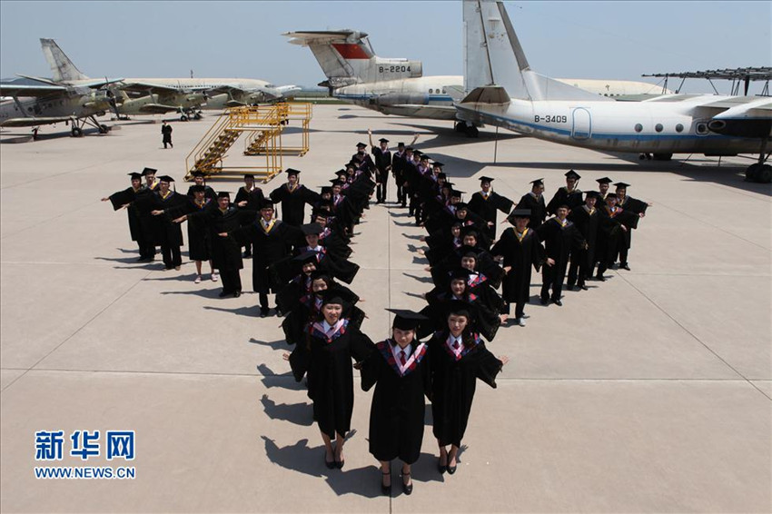 天津にある中國(guó)民航大學(xué)では12日、同大學(xué)の2014年度卒業(yè)生が學(xué)內(nèi)の大型旅客機(jī)の前で卒業(yè)記念撮影を行い、豊かな大學(xué)生活に別れを告げた。新華社が伝えた。(編集YH)