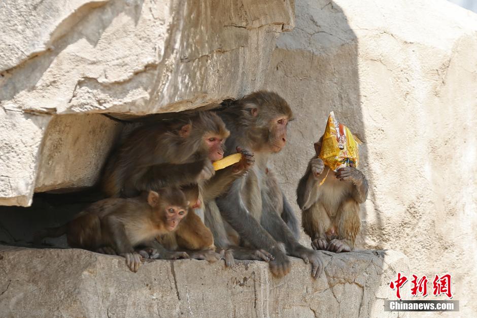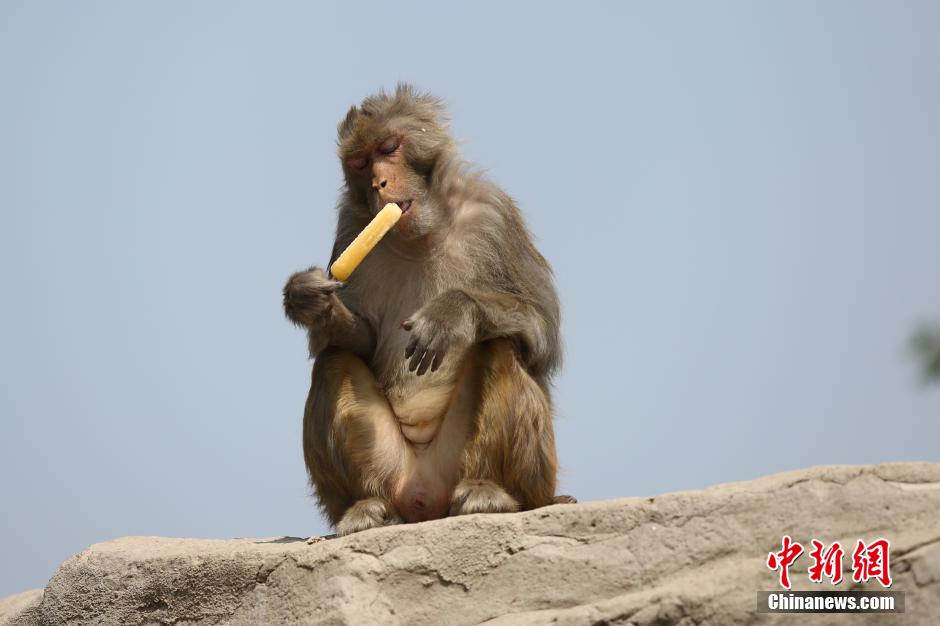 山西省太原動物園では12日、アイスを食べて暑さをしのぐサルの姿が見られた。太原市では同日、最高気溫が32℃に達した。飼育係は動物たちに果物や氷を與えたり、池の水を増やしたりして暑さ対策を行なった。中國新聞網(wǎng)が伝えた。(編集YH)