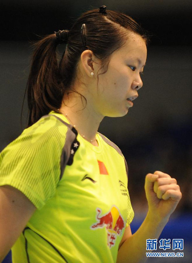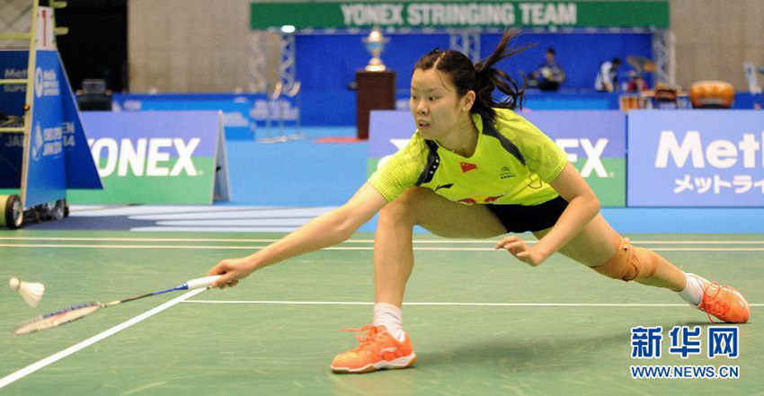 寫真は15日、試合中にレシーブする李雪ゼイ選手。同日、東京で行なわれている2014年バドミントンのヨネックス?オープン?ジャパンの女子シングルス決勝戦で、中國の李雪ゼイ選手が2対0で中華臺(tái)北の戴資穎選手を破って優(yōu)勝した。新華網(wǎng)が伝えた。(編集YH)