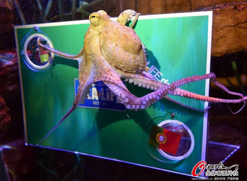 北京時間の14日、サッカー?ワールドカップ(W杯)2014ブラジル大會では、タコのパウルの伝説が再び登場し、ドイツ対ポルトガルの試合結(jié)果を予言した。17日未明0時、G組のポルトガルはドイツとの初戦に臨む。(寫真はOsports全體育版が著作権所有。転載禁止)。人民網(wǎng)が伝えた。(編集YH)