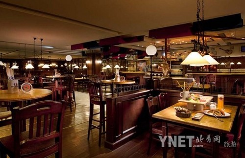 同店も見(jiàn)逃せない場(chǎng)所で、多くのリピーター客がいる。夏にテラスで楽しむ食事は快適だ。ザワークラウトが美味しい。環(huán)境がよくリラックスできる店內(nèi)のインテリアはドイツのビールハウスの雰囲気で、ウェイトレスもドイツ風(fēng)のスカートを著ている。開(kāi)放的なレストランは外の花壇につながっており、料理もおいしい。