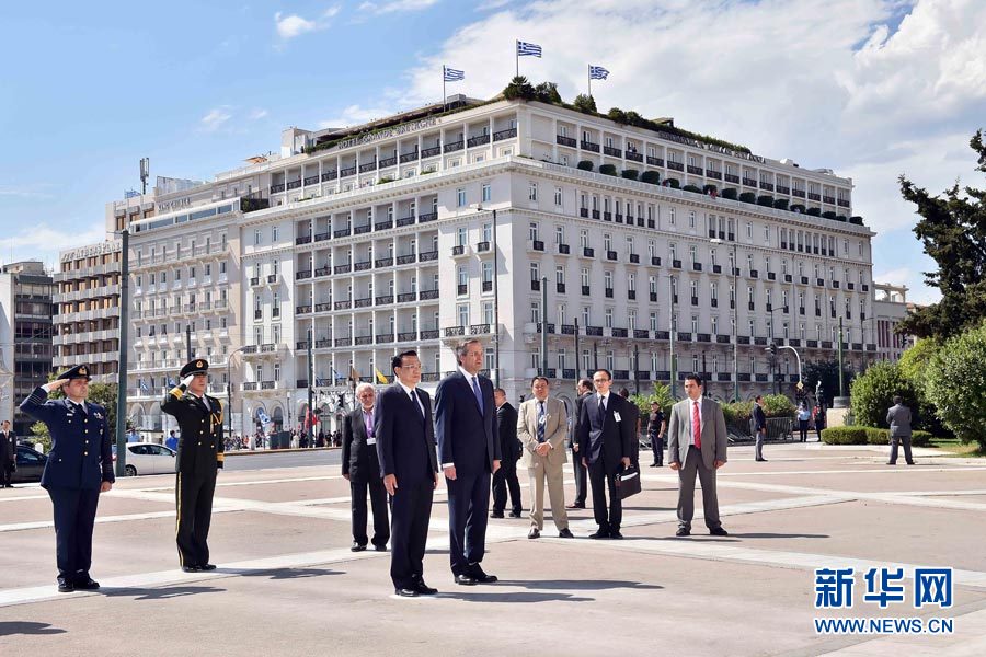 會談前、李総理はサマラス首相に伴われ、ギリシャの無名戦士記念碑に獻花した。(編集NA)