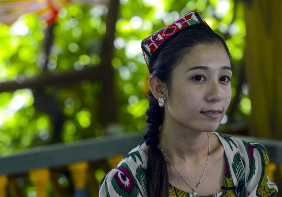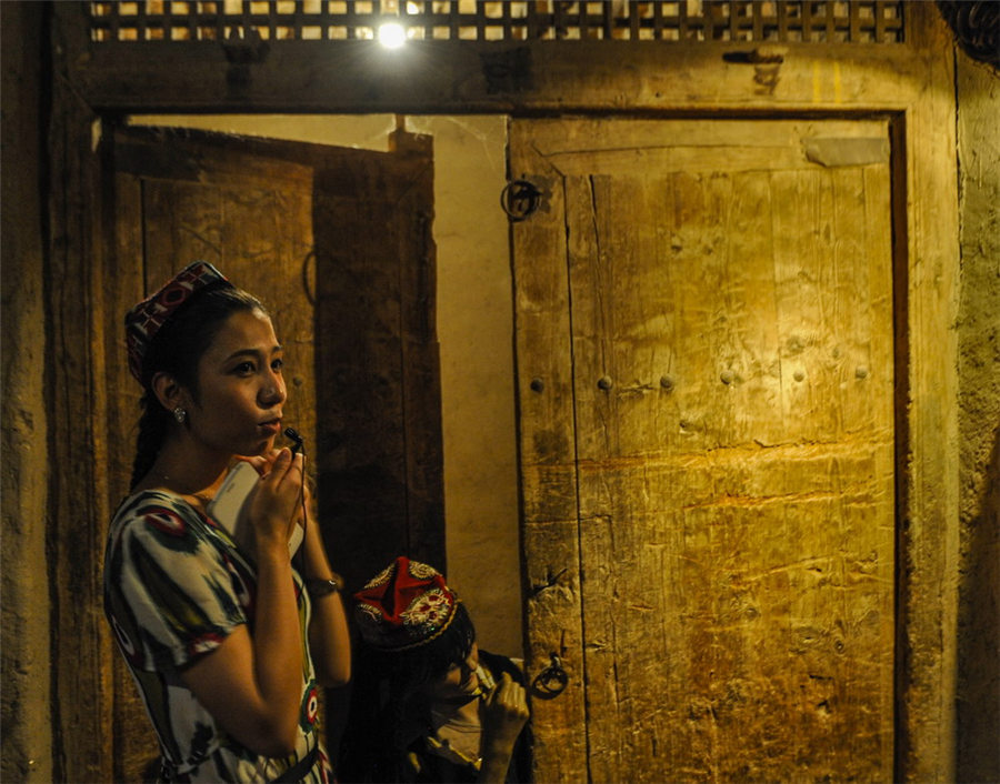 ウイグル族の女性は小さい頃から歌や踴りが上手で、アルディラさんも例外ではない。彼女は招きを受けて民間の舞踏愛(ài)好家グループに參加し、毎週ダンスの練習(xí)をしている。また每月友人と一緒に現(xiàn)地のレストランで歌や踴りを楽しみ、リラックスしている。