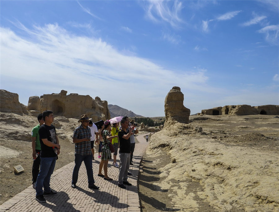 新疆維吾爾(ウイグル)自治區(qū)吐魯番は、夏に観光シーズンを迎える。ガイドのアルディラさんは晝間は多くの観光客を連れて交河故城や高昌故城、火焔山、葡萄溝、坎児井といった観光地を回り、夜には様々な趣味を楽しんでいる。