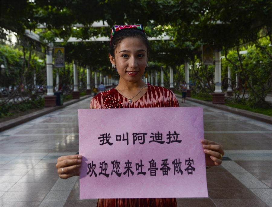 アルディラさんは地元出身の吐魯番の娘さんで、現(xiàn)地の「最も美しいガイド」30人の一人に選ばれている。この仕事を始めて5年の間、彼女は流暢な北京語(yǔ)で數(shù)多くの遠(yuǎn)くから訪れた観光客に彼女の故郷を紹介している。