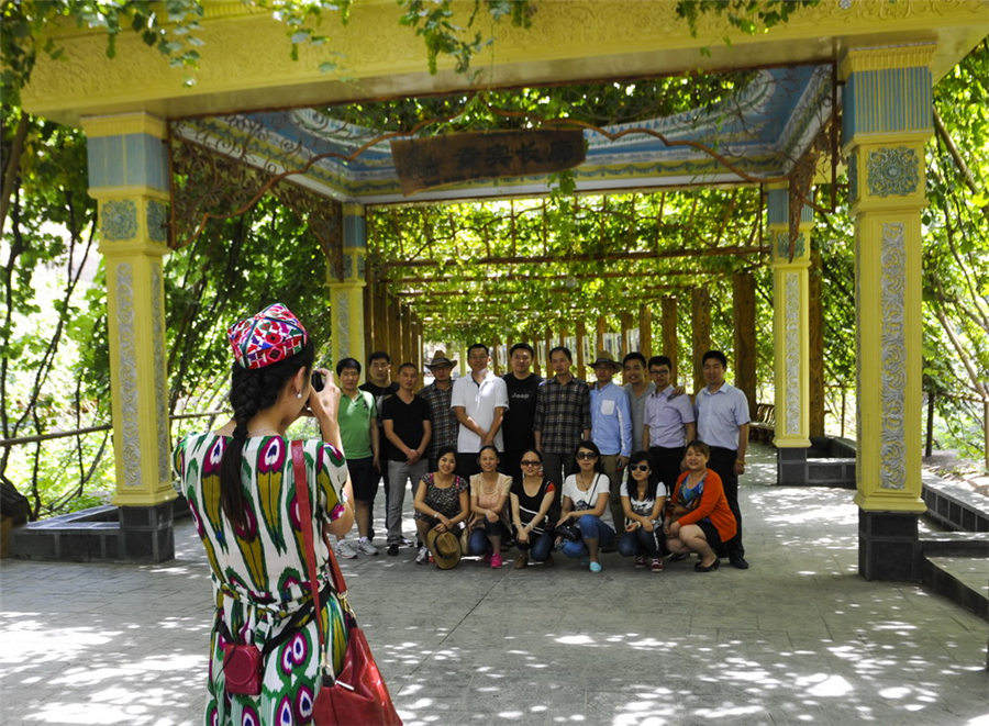 ブドウの蔓が一面に絡(luò)んだ回廊で、アルディラさんに取材した。なぜ烏魯木斉(ウルムチ)で大學(xué)を卒業(yè)した後に吐魯番に戻ったのかとたずねると、木漏れ日の下でアルディラさんはあっさりと「故郷が好きだから、ここにいたかった。各地からの観光客が私の紹介を通じてこの土地の自然や人情の美しさを理解してくれ、より多くの友人が私の故郷を訪れてくれることを願(yuàn)います」と答えた。(編集YH)