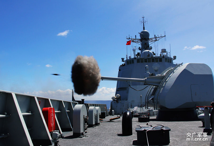 環(huán)太平洋合同演習「リムパック2014」に參加する多國籍艦隊は現(xiàn)地時間19日午後、ハワイへの航行中に火砲の対海射撃演習を行った。中國海軍のミサイル駆逐艦「??凇工去撺单ぅ胱o衛(wèi)艦「岳陽」は共に海上の目標に精確に命中させた。央広網(wǎng)が伝えた。