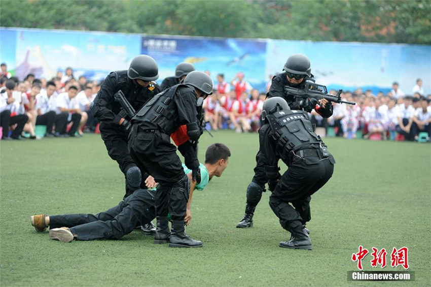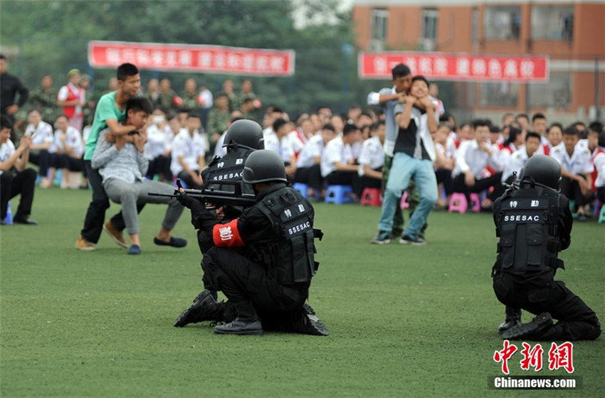 全國初の大學(xué)生の學(xué)內(nèi)テロ?暴力対策チームがこのほど成都東星航空観光専修學(xué)院で設(shè)立され、テロ?暴力対策の演習(xí)を行なった。同チームの教官は成都市公安局溫江分局の警察官が擔(dān)當(dāng)し、隊員たちは身體能力の訓(xùn)練や戦術(shù)を含む2カ月の厳しい訓(xùn)練を受けた。中國新聞網(wǎng)が伝えた。(編集YH)