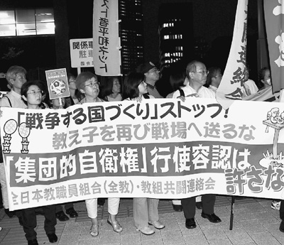 「憲法解釈の変更による集団的自衛(wèi)権の行使容認に斷固反対」「(集団的自衛(wèi)権の行使容認)閣議決定に反対」「憲法9條を壊すな」「戦爭反対」などの叫び聲が23日遅く、東京の日本首相官邸前に再びこだました。民意を無視し、憲法解釈の変更による集団的自衛(wèi)権の行使容認を試みる安倍內(nèi)閣に対する、日本の民衆(zhòng)500人余りの力強い反撃だ。