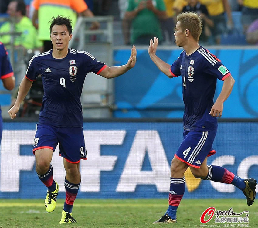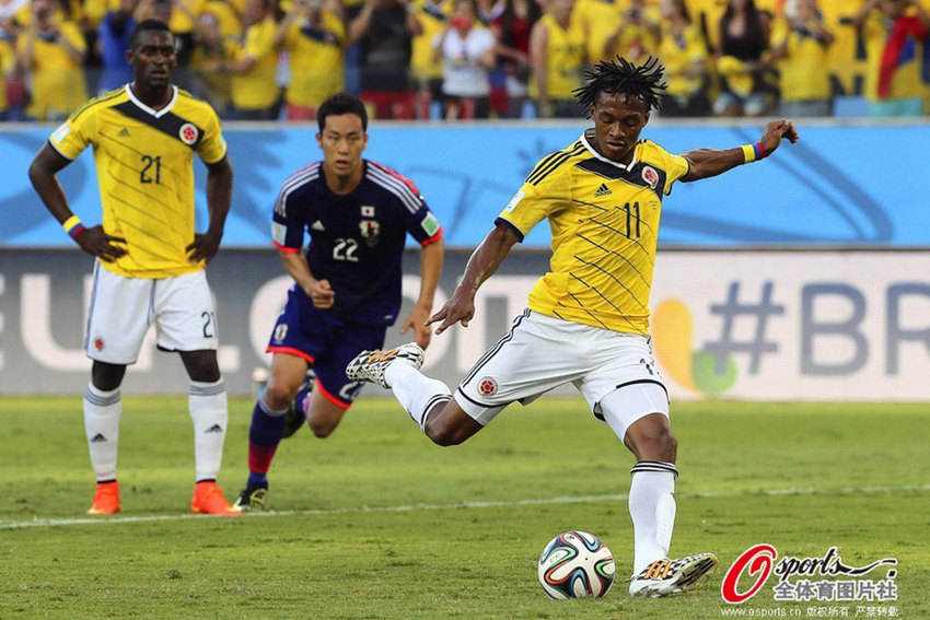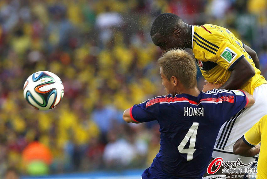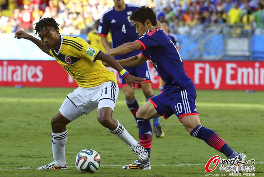 北京時(shí)間25日早朝、サッカーW杯1次リーグC組の試合で、日本は1―4でコロンビアに敗れた。試合開始後、クアドラード選手のシュートで先制。前半終了前に日本は岡崎慎司選手が1點(diǎn)を決めて1―1に。コロンビアは後半に登場したハメス?ロドリゲス選手が力を発揮し、一つのゴールを決め、そしてジャクソン?マルティネス選手のゴールを2回アシストし、日本の決勝トーナメント進(jìn)出の希望を打ち砕いた。(寫真はOsports全體育が著作権所有。転載禁止)。人民網(wǎng)が伝えた。(編集YH)