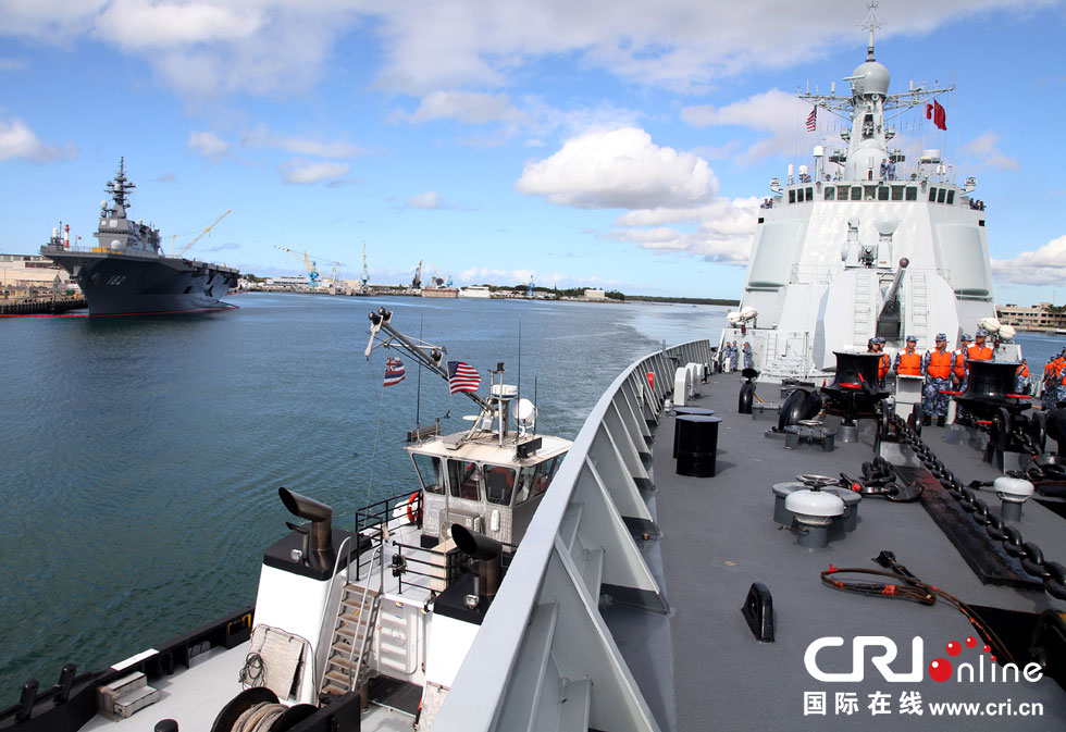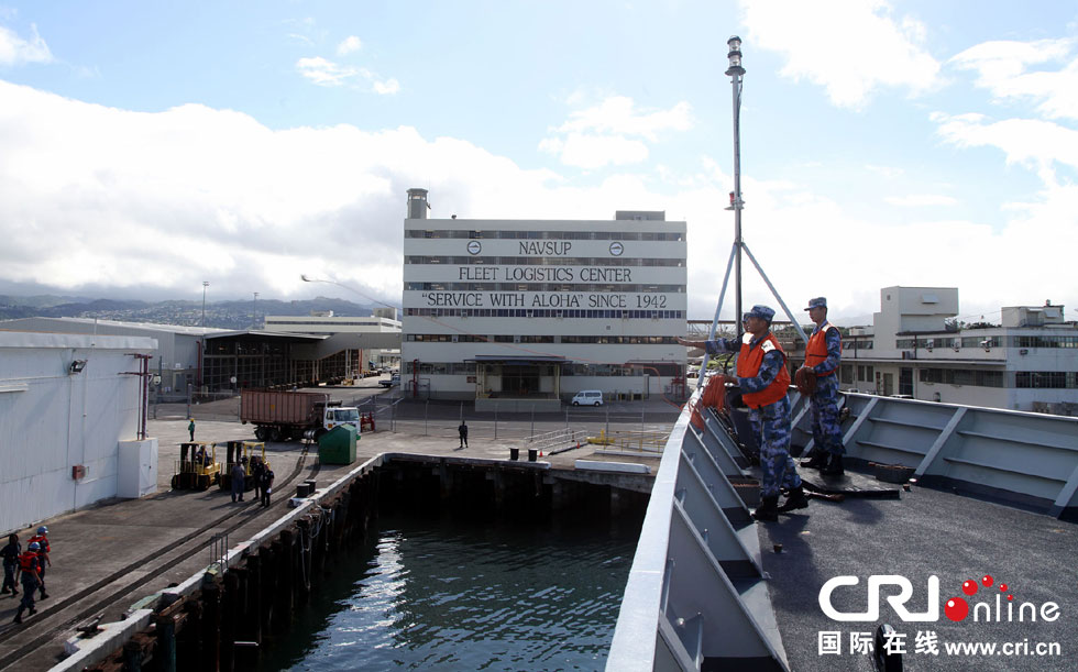 24日、中國海軍の総合補給艦「千島湖」が米ハワイ?真珠灣に停泊した。現(xiàn)地時間24日午前9時、環(huán)太平洋合同演習「リムパック2014」に參加する中國海軍のミサイル駆逐艦「海口」、ミサイル護衛(wèi)艦「岳陽」、総合補給艦「千島湖」、病院船「平和の方舟」が米ハワイ?真珠灣の基地に無事到著した。(編集NA)