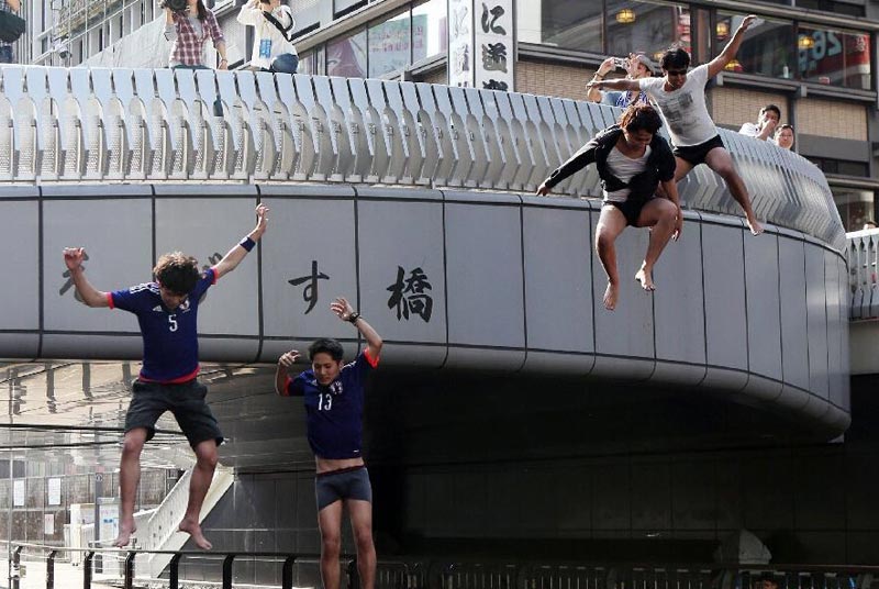 サッカーW杯で日本チームが1次リーグ敗退となり、ブラジル大會から去ることになった。アジアでサッカーが最も人気の國の一つである日本では、ファンの行動も熱狂的だ。今回の敗退を惜しむファンは、川に飛び込んで憂さを晴らしていた。北青網(wǎng)が伝えた。(編集YH)