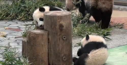 木登りに奮闘する日本のパンダの赤ちゃん (3)
