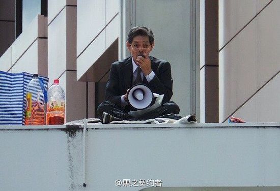 29日午後、東京?新宿駅南口の歩道橋の上で「集団的自衛(wèi)権に反対」などのスローガンを拡聲器で叫んでいた男性が焼身自殺を図り、安倍政権の逆行に抗議の意を示した。(編集NA)